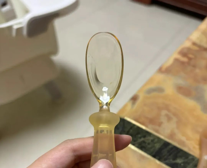 普通浅勺舀3次洒一半,宝宝张嘴的瞬间还洒得满下巴都是。